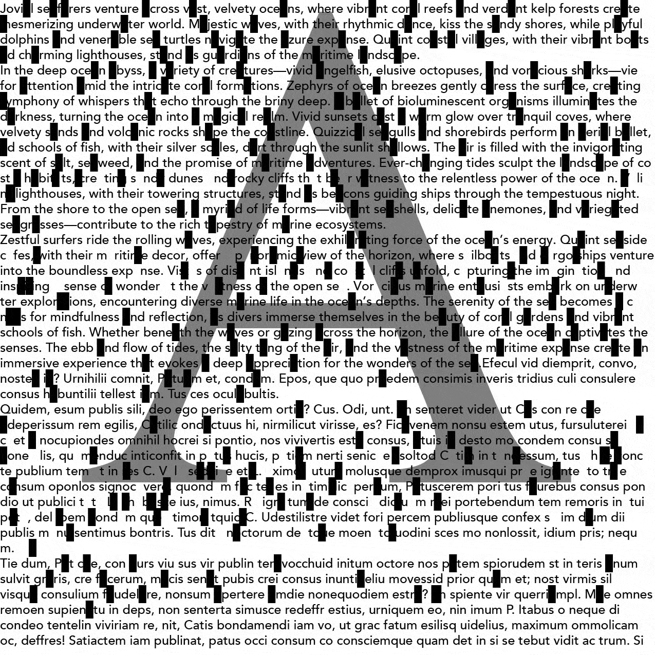 2. At each instance where the identified letter appears, it is replaced with a black box.